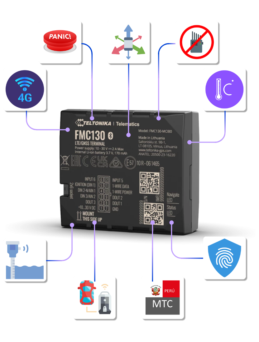 Contar con equipos acorde y de buena calidad en tus vehículos, garantiza el buen funcionamiento aún en las condiciones más extremas de trabajo. Nuestros equipos son seleccionados cuidadosamente, están certificados internacionalmente y homologados por el MTC. Así nos preocupamos por proteger siempre tu operación e inversión.